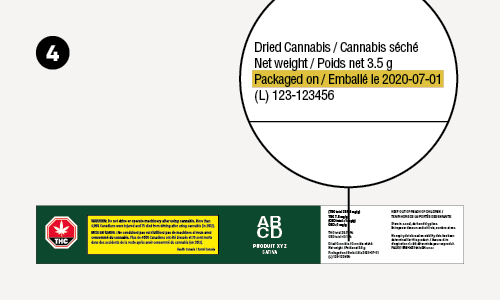 La date à laquelle le cannabis a été emballé – et non pas récolté - figure sur l’étiquette de produit. Santé Canada n’oblige pas les producteurs à inscrire sur le produit une date d’expiration, donc plusieurs ne le font pas.