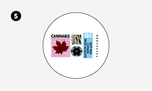 Le timbre ne fait pas partie de l’étiquette, il est plutôt apposé sur l’ouverture d’un produit ou sur l’emballage externe (boîte en carton) pour qu’il se déchire lorsqu’on ouvre le produit. Chaque province a son propre timbre.